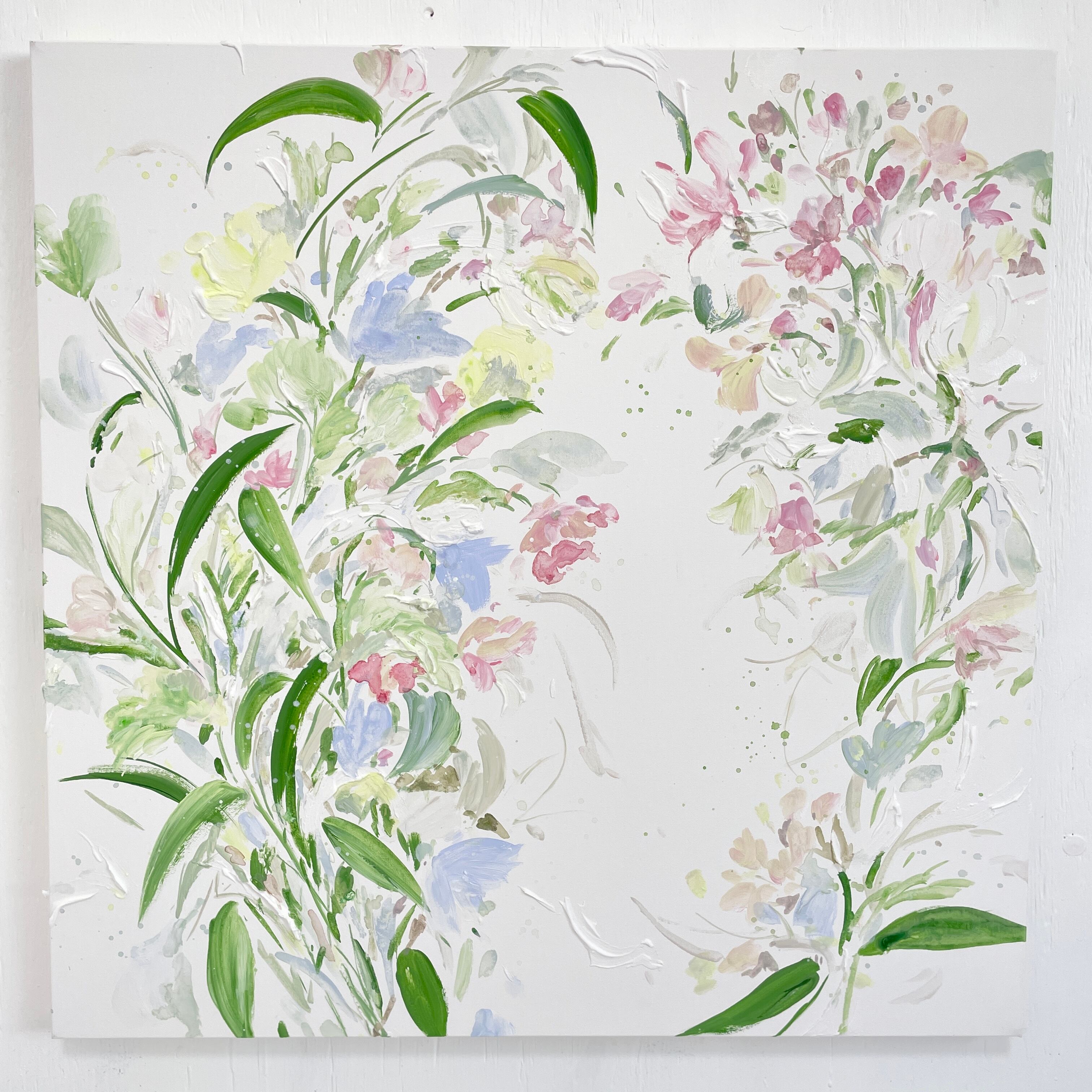 歌い出したり、踊り出したいような気持ちを、絵の具とお花に託して表現しています。