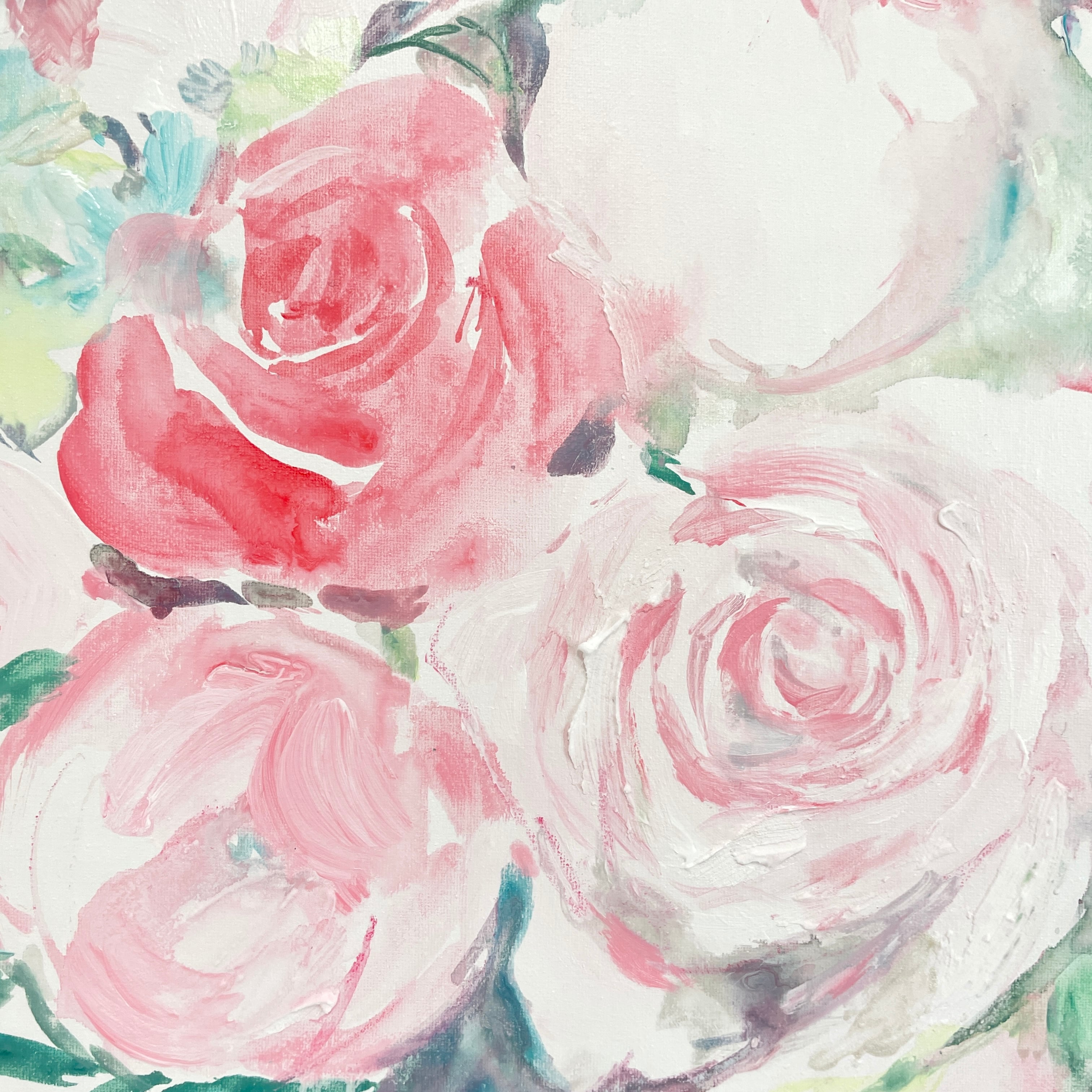 歌い出したり、踊り出したいような気持ちを、絵の具とお花に託して表現しています。