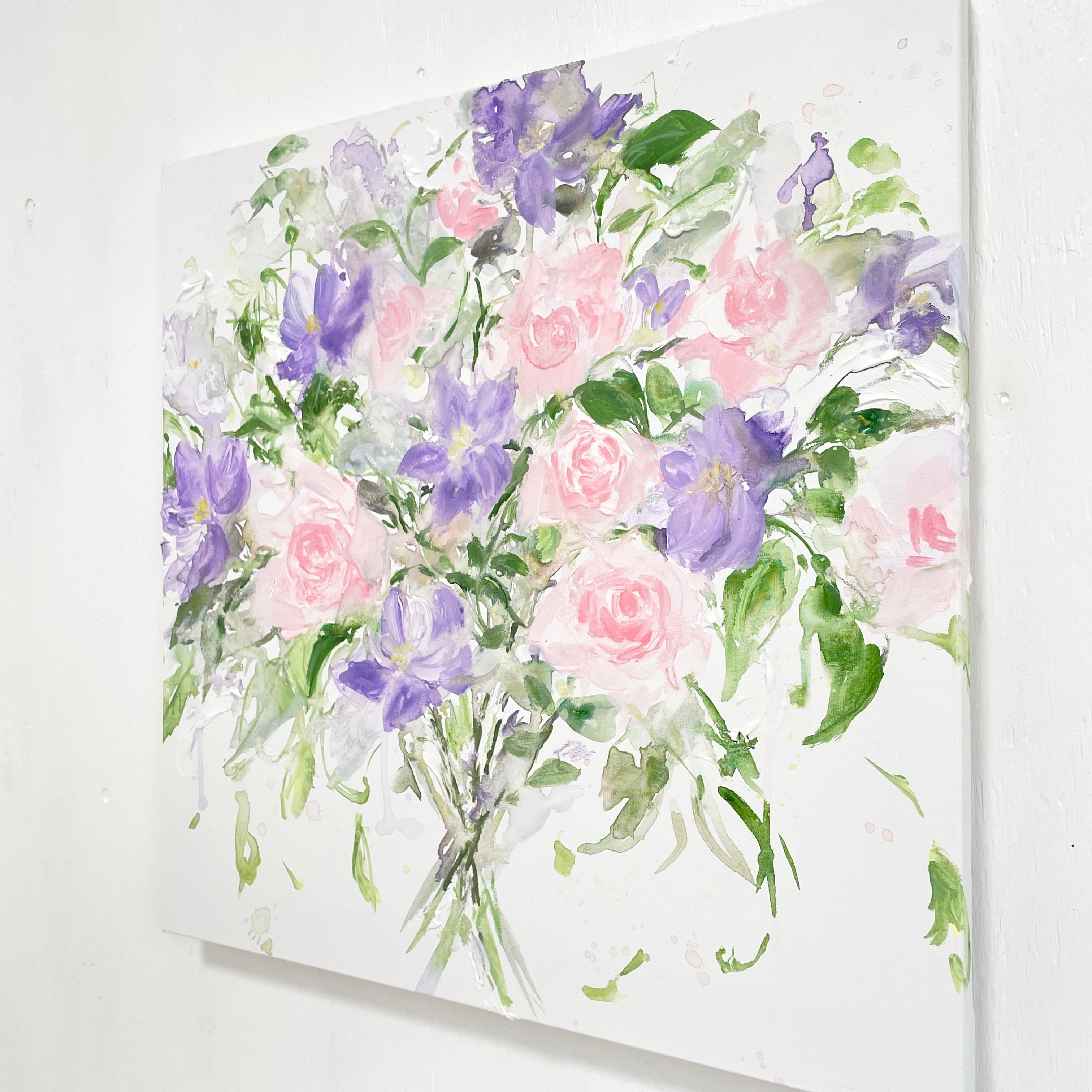 歌い出したり、踊り出したいような気持ちを、絵の具とお花に託して表現しています。