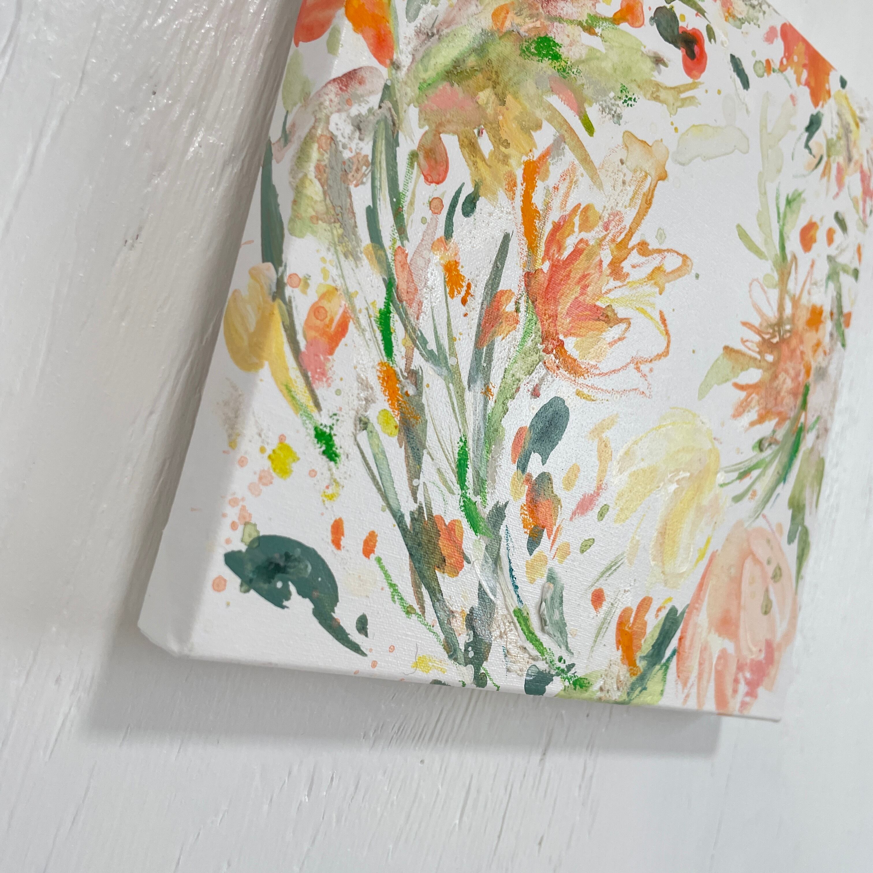 歌い出したり、踊り出したいような気持ちを、絵の具とお花に託して表現しています。